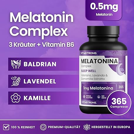 Thương hiệu Vitastrong. là cái tên nổi tiếng được rất nhiều khách hàng trên thế giới chọn lựa. Với kiểu dáng đẹp mắt, sang trọng, sản phẩm Melatonin Vitastrong Komplex, 365 Mikro-Tabletten, Hochdosiert mit Kamille, Baldrian, Lavendel und Vitamin B6, Melatonin Tabletten für Schlafqualität und Jetlag, Zucker- Gluten- und GVO-Frei là sự lựa chọn hoàn hảo nếu bạn đang tìm mua một món cho riêng mình.