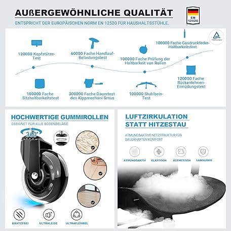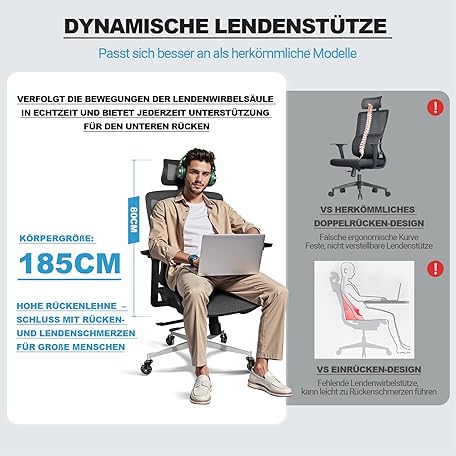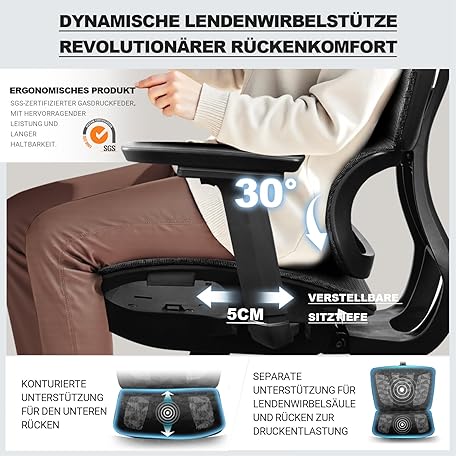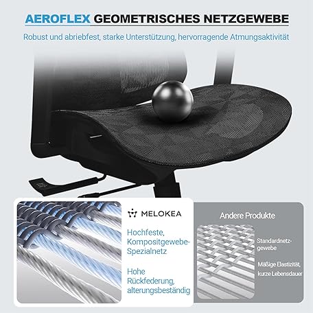 Thông tin sản phẩm MELOKEA Ergonomic Office Chair, 4D Armrests, Adjustable Seat Depth, Rubber Wheels, 4-Level Tilt, Office Chair 150 kg, Breathable and Comfortable Mesh Seats, EN 12520 Ergonomic Desk Chair