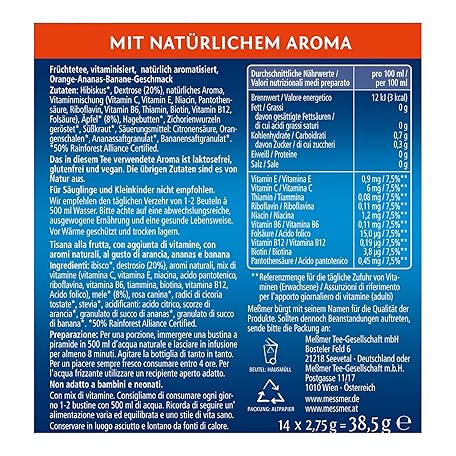 Thông tin sản phẩm Meßmer Cold Tea Sport Multivitamin, Limited Edition, with Dextrose and Vitamin Mix, 14 Pyramid Bags, Gluten-Free, Lactose-Free, Vegan