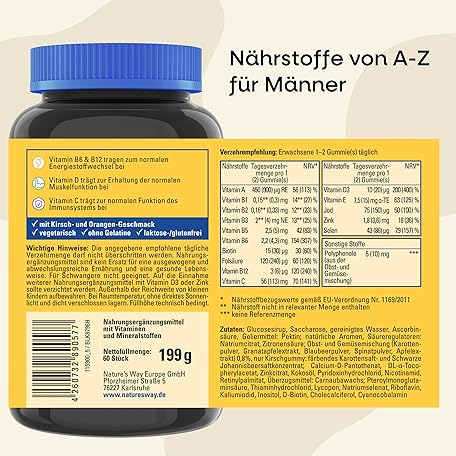 Sản phẩm Men's Multivitamin Gummies High Dose - A-Z Vitamins - Immune System Strengthens Adults with Vitamins D3 B6 B12 Zinc Selenium Folic Acid - Vegetarian Gummy Bears - Pack of 60 đang được bán với giá ưu đãi là $27.9585 tại nước Đức.