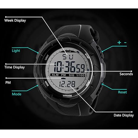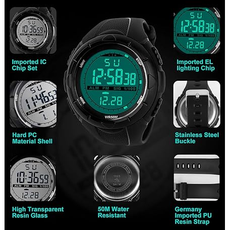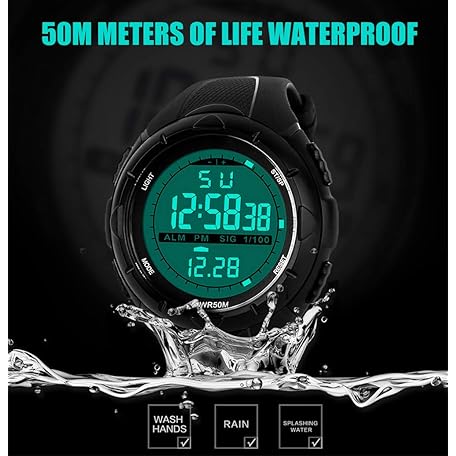 Sản phẩm Mens Sports Digital Watch - 5 Bars Waterproof Military Digital Watches with Alarm/Timer/SIG, Black Large Face Outdoor Sport LED Wrist Watch for Men by BHGWR đang được bán với giá ưu đãi là $18.9006 tại nước Đức.