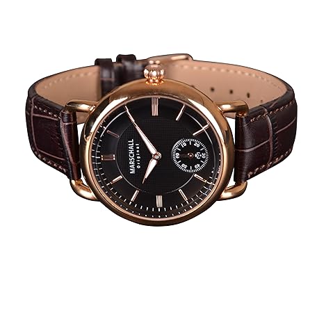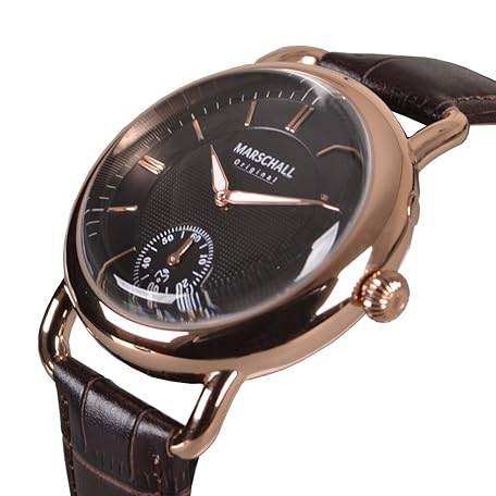 Men's Watch, Doble Rose , Radio-Controlled Watch with Brown Leather Strap, Luminescent Hands, Elegant and Minimalist, black, Classic
