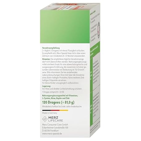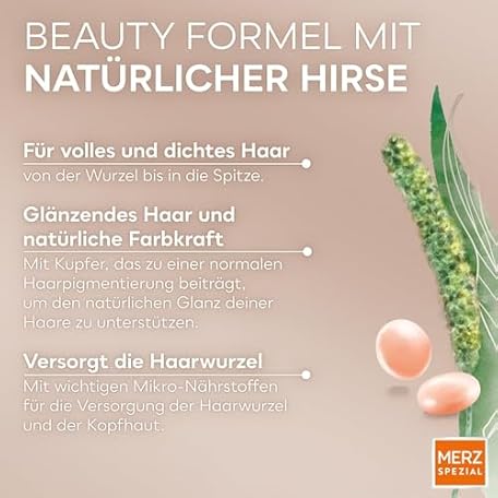 Thông tin sản phẩm Merz Spezial Haar-Activ Dragees - Haar Vitamine für gesundes, volles & glänzendes Haar - Nahrungsergänzungsmittel mit Biotin, Zink & natürlicher Hirse - 2 x 120 Kapseln