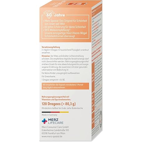 Sản phẩm Merz Spezial Skin Hair Nails Dragees - Dietary Supplement with 13 Micro Nutrients for Radiant Skin, Shiny Hair and Firm Fingernails - 1 x 120 Tablets đang được bán với giá ưu đãi là $13.9193 tại nước Đức.