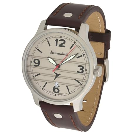 Messerschmitt Unisex Pilot Watch M-18-1 Swiss Ronda 515 Quartz Movement 5ATM with Brown Leather Strap, Strap.