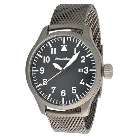 Messerschmitt XL Pilot Watch Quartz Ronda Model ME-47XLB Milanese Stainless Steel 5ATM, Strap.