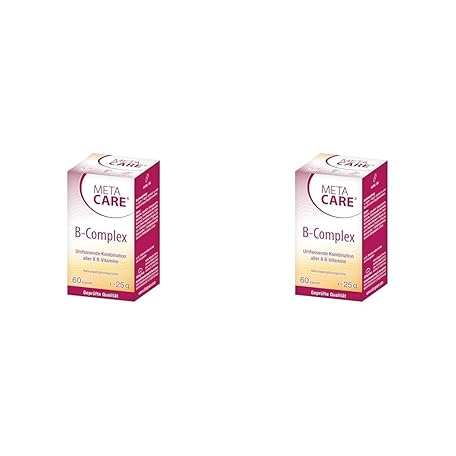 META CARE B-Complex - Comprehensive Combination of All 8 B Vitamins - Supplemented with Manganese and Choline - Ideal Dose - High Bioavailability - Vegan - 60 Capsules (Pack of 2)