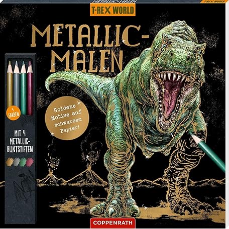 Metallic-Malen: Mit 4 Metallic-Buntstiften (T-Rex World)
