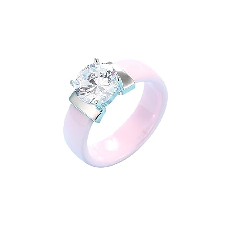 MIATCENRT Kristall-Keramik-Ringe Für Damen – Weiblich, Großes Karat, Modisch, Rosa, 6 Mm, Keramik, Zirkonia, Liebe, Verlobungsring, Schmuck, Geschenke Für Die Tägliche Party, Pink, 6