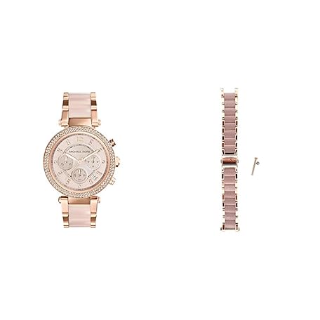 Sản phẩm Michael Kors Fossil Women's Parker Rose Gold Stainless Steel Watch and Replaceable Pink Leather Strap, Set, Classic đang được bán với giá ưu đãi là $260.3356 tại nước Đức.