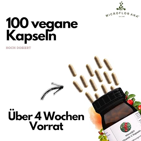 Sản phẩm MicroQi® Vitamin C Capsules with Natural Vitamin C, 100 Vegan Capsules, 200 mg Vitamin C per Capsule, Acerola Cherry and Rosehip, Vegan, Laboratory Tested, 600 mg per Daily Protion đang được bán với giá ưu đãi là $21.0152 tại nước Đức.