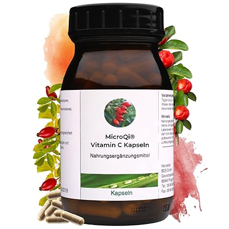 Thông tin sản phẩm MicroQi® Vitamin C Capsules with Natural Vitamin C, 100 Vegan Capsules, 200 mg Vitamin C per Capsule, Acerola Cherry and Rosehip, Vegan, Laboratory Tested, 600 mg per Daily Protion