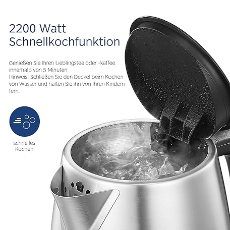 Sản phẩm Midea MKE17M1ADS Stainless Steel Kettle, 1.7 L, BPA-Free Kettle, 2200 W Quick Boil Function, Kettle with Water Level Indicator, LED Light Indicator, 360° Base, Dry Run Protection, MKE17M1ADS đang được bán với giá ưu đãi là $38.0846 tại nước Đức.