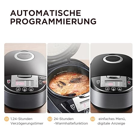Thông tin sản phẩm Midea Rice Cooker, Multi-Cooker with 11 Programmes, Rice Cooker 5 L for 2-10 People, Slow Cooker & Steamer with 24-Hour Warming Function, Timer, Includes Steamer Insert, Spoon & Measuring Cup, Black