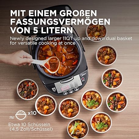 Sản phẩm Midea Rice Cooker, Multi-Cooker with 11 Programmes, Rice Cooker 5 L for 2-10 People, Slow Cooker & Steamer with 24-Hour Warming Function, Timer, Includes Steamer Insert, Spoon & Measuring Cup, Black đang được bán với giá ưu đãi là $132.8928 tại nước Đức.