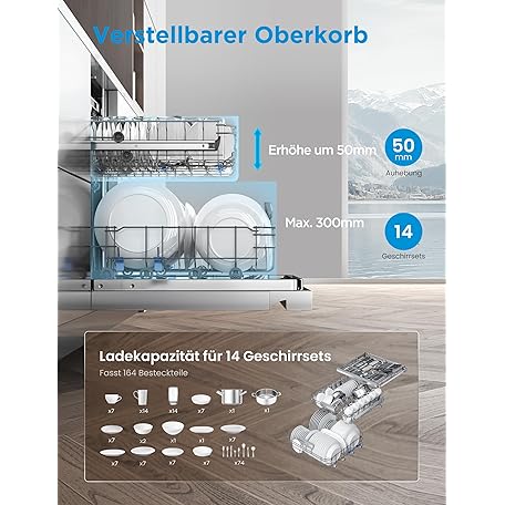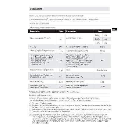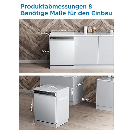 Thông tin sản phẩm Midea SF 7.60NW14B Geschirrspüler 60cm Freistehend & Unterbaufähig, 14 Maßgedecke, 8 Programme, Spülmaschine 60 cm mit WIFI, 42 db, Hygienepflege+, Dualzone Wash, Extra Trocknen