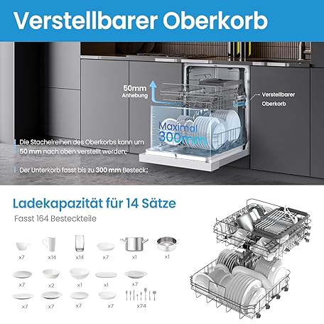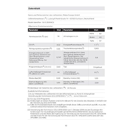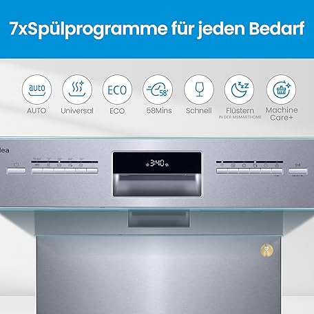 Thông tin sản phẩm Midea SU 5.35X14CS Geschirrspüler Unterbau, 14 MGD, Spülmaschine 60 cm, Home Connect, Hygienepflege+, Maschinenpflege+, Extra Trocknung, Halbe Beladung, 44 db, Startverzögerung, Edelstahl