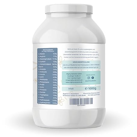 Thông tin sản phẩm Mighty Elements Vegan Protein Vanilla 1 kg – 85% Vegetable Protein, 5K Protein Powder, Gluten-Free, Lactose & Milk Protein, Protein Shake, Muscle Building
