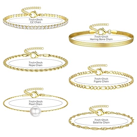 Sản phẩm Milacolato 6 Piece Chain Bracelets Set for Women Adjustable Fashion 18K Gold-Plated Delicate Stainless Steel Twist Figaro Herringbone Chain Zirconia Link Bracelet Jewellery đang được bán với giá ưu đãi là $20.2413 tại nước Đức.