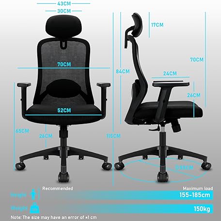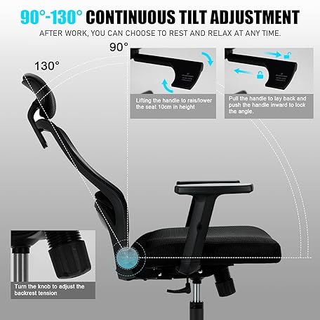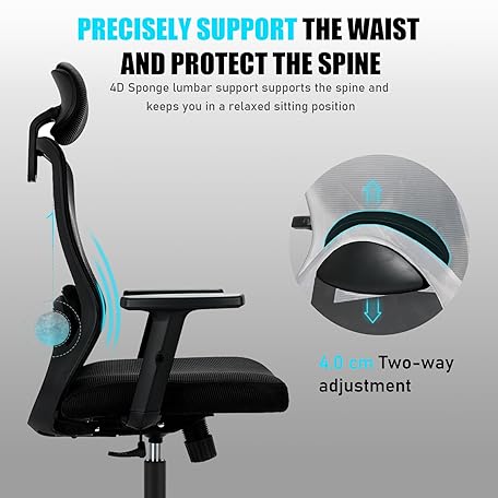 Thông tin sản phẩm Milacyee Bürostuhl Ergonomisch, Schreibtischstuhl mit Verstellbarer 4D Lendenwirbelstütze, Bürostuhl mit Kopfstütze, Chefsessel aus Mesh mit 90°-130° Liegefunktion (AbschlieBbar), Drehstuhl bis 150KG