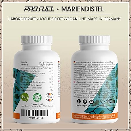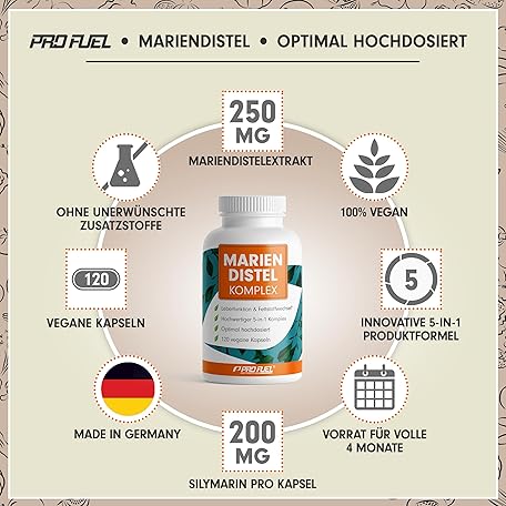 Sản phẩm Milk Thistle Capsules High Dose 120x - 5-fold Complex with Milk Thistle, Artichoke, Dandelion, Desmodium & Choline - Liver Function & Fat Metabolism - 200 mg Silymarin per Day - Supply for 4 Months đang được bán với giá ưu đãi là $12.4914 tại nước Đức.
