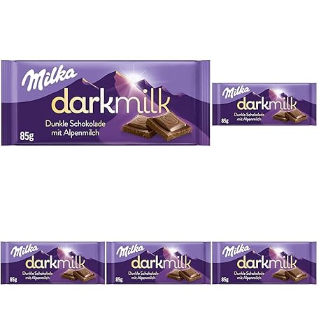 Milka Dark Milk - Dark Alpine Milk Chocolate with Intense Cocoa Flavour - 1 x 85g (Pack of 5)