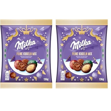 Milka Fine Balls Mix 1 x 133 g I Christmas Chocolate Single Pack I Advent Calendar Chocolate I Sweets for Christmas Made of 100% Alpine Milk Chocolate (Pack of 2)
