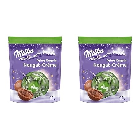 Milka Fine Balls Nougat Créme 1 x 90 g I Christmas Chocolate Single Pack I Advent Calendar Chocolate I Sweets for Christmas Made from 100% Alpine Milk Chocolate (Pack of 2)