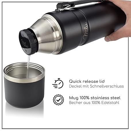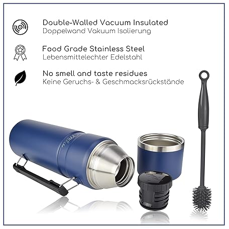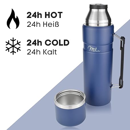 Thông tin sản phẩm Milu Thermos Flask 1 L - Thermos Flask with Handle - Insulated Stainless Steel Drinking Bottle - 100% Leak-Proof, Double Wall Insulation (Navy Blue, 1000 ml)