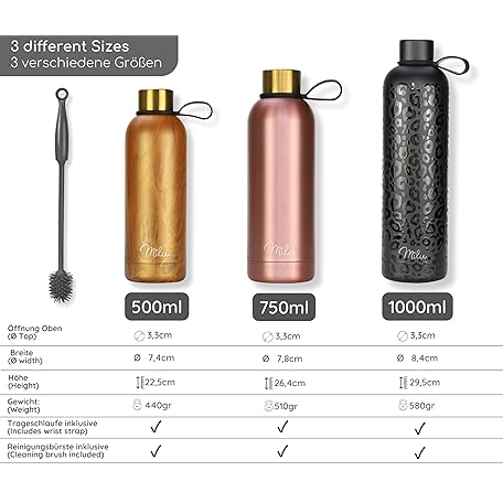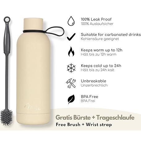Thông tin sản phẩm Milu Thermos Flask, 500 ml, Insulated Stainless Steel Thermal Flask, Leak-Proof Insulated Flask, Double-Walled, Suitable for Carbonated Drinks, Includes Cleaning Brush (Diamond Sand, 500 ml)