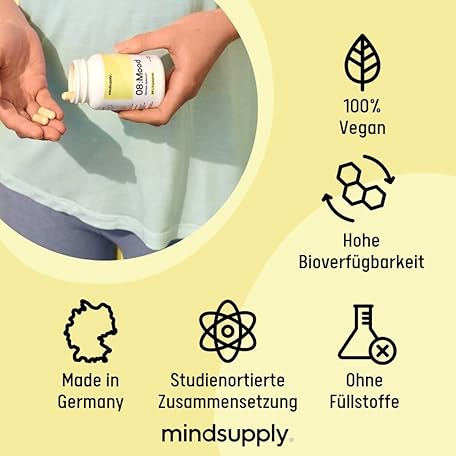 Thương hiệu mindsupply là cái tên nổi tiếng được rất nhiều khách hàng trên thế giới chọn lựa. Với kiểu dáng đẹp mắt, sang trọng, sản phẩm mindsupply® Mood, 90 Anti-Stress Capsules, Mood Brightener, Serotonin Synthesis with L-Tryptophan, Rose Root Extract, Vitamin B12, B6, D & Q10, Vegan Capsules Against Stress & Fatigue là sự lựa chọn hoàn hảo nếu bạn đang tìm mua một món cho riêng mình.