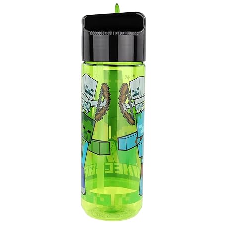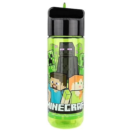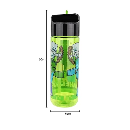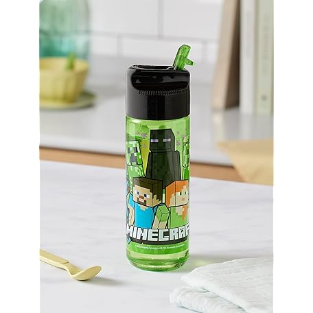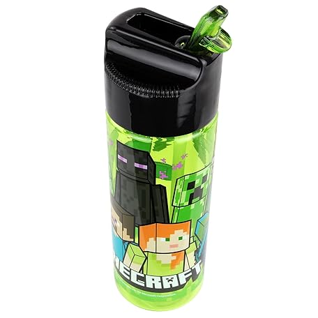 Thông tin sản phẩm Minecraft Kinderflasche 480 ml – BPA-frei & phthalatfrei, robuste Wasserflasche aus Kunststoff mit integriertem Strohhalm zum Hochklappen, leicht, auslaufsicher & ideal für Schule und Sport