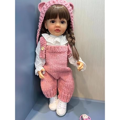 Sản phẩm MineeQu 22 Inch Long Brown Hair Silicone Vinyl Full Body Anatomically Correct Lifelike Reborn Baby Doll Realistic Newborn Toddler Girl Dolls in Pink Wool Set đang được bán với giá ưu đãi là $68.0814 tại nước Đức.