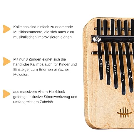 Sản phẩm Mini Kalimba - 8 Buttons | Solid Maple Wood in C Major | 60 Decibels Volume Ideal Instrument for Beginners and Children đang được bán với giá ưu đãi là $27.7187 tại nước Đức.