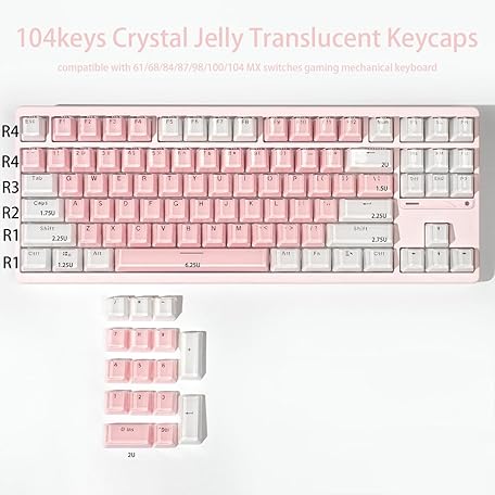 Sản phẩm Mintcaps Keycaps - 104 Keys Crystal Jelly Keycaps Translucent Custom Keyboard Keycap OEM Profile Cute Keycaps for 60/65/75/100 Cherry Gateron MX Mechanical, Pink and White đang được bán với giá ưu đãi là $32.9507 tại nước Đức.