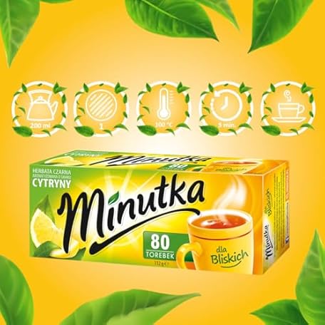 Thông tin sản phẩm Minutka - Black Tea with Lemon - 80 Tea Bags - Black Tea Lemon - Premium Quality, High Quality Black Tea with Lemon Peel, Refreshing, Aromatic & Full-bodied - 112 g