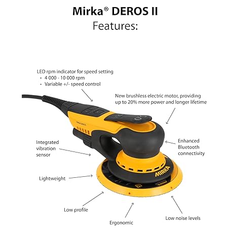 Thông tin sản phẩm Mirka DEROS II 5650 Exzenter-Schleifer Schleifmaschine mit Absaugung für Ø 125 & 150mm Schleifpapier / 5,0mm Hub Maschine für staubfreies Schleifen von Holz, Trockenbau & Metall / MID5650404CA