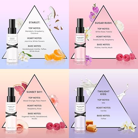 Thông tin sản phẩm Miss So...? Womens Perfume Mist Gift Set (4 x 50ml) – Starlet, Sugar Rush, Twilight Kiss, Sunset Sky – Long-Lasting So Body Mist for Women – Vegan & Cruelty-Free – Lasts up to 6 Hours