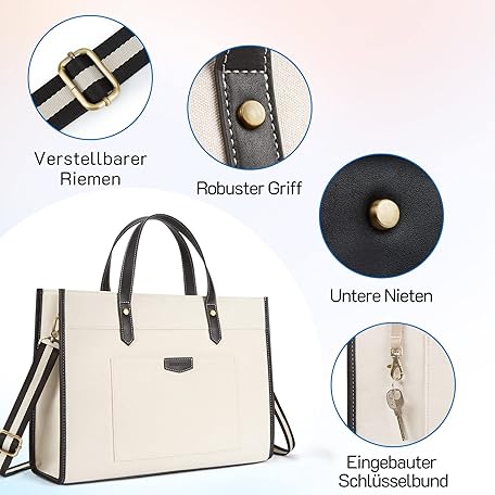 Thông tin sản phẩm Missnine Laptop Bag 15.6 Inch Handbag Women's Business Work Bag Shopper Large Canvas Bag Teacher Bag Briefcase for Office Uni, Black & Beige, Unit size, Contemporary