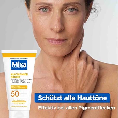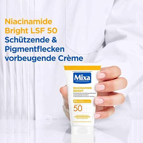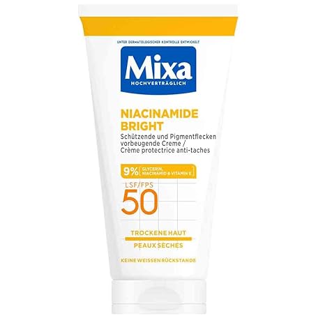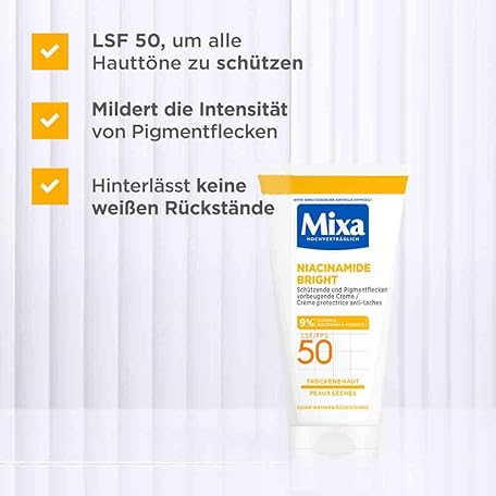 Sản phẩm Mixa Protective & Pigment Spot Preventive Cream SPF 50, Anti-Pigment Spot Cream, for Dry Skin, Niacinamide Bright, Hypoallergenic, 50 ml đang được bán với giá ưu đãi là $6.3329 tại nước Đức.