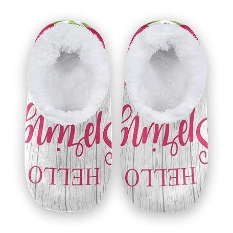 Mnsruu Hello Spring Blossom Holzhausschuhe, Fleece, bequem, für Schlafzimmer, rutschfest, für Damen, Größe 40-42