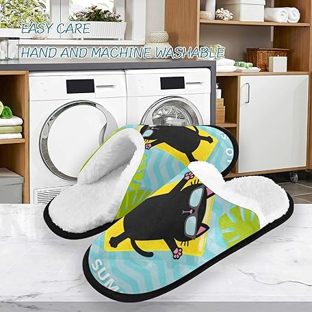 Sản phẩm Mnsruu Hello Summer Cat Chevron Slippers Non-Slip Cotton Slippers Home Hotel Spa Bedroom Travel M for Men Women đang được bán với giá ưu đãi là $17.6471 tại nước Đức.