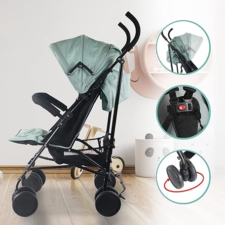 Thông tin sản phẩm Mobiclinic® Kids, Pushchair, Buggy, Elephant, Adjustable Backrest, Foldable, Double Safety System, Removable Wheels, Adjustable 5-Point Strap, Lightweight, Green and Black