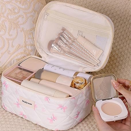 Thông tin sản phẩm Modische gesteppte Make-up-Tasche mit Schleife, Accessoire für Damen, für den täglichen Gebrauch, elegante Reise-Kosmetik-Aufbewahrungsartikel, B