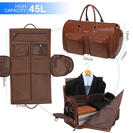 Modoker Convertible Garment Bag Leather Carry On Luggage Travel Waterproof Garment Bag Gifts for Men Women Business - 2 in 1 Hanging Suitcase Suit Travel Bags, A-brown, Modoker Travel Garment Bag &