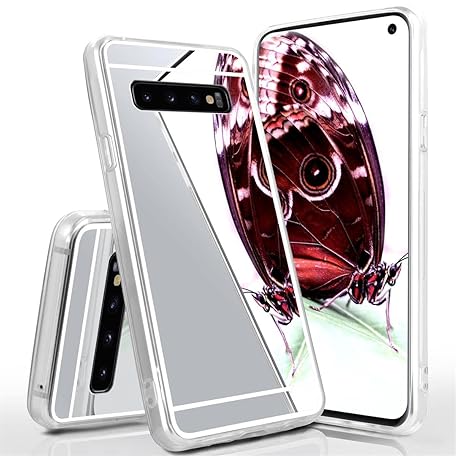 moex Mirror Case für Samsung Galaxy S10 Hülle mit Spiegel und erweitertem Kantenschutz aus Silikon, Handyhülle verspiegelte Rückseite, Stylische Handy Schutzhülle dünn, Silber