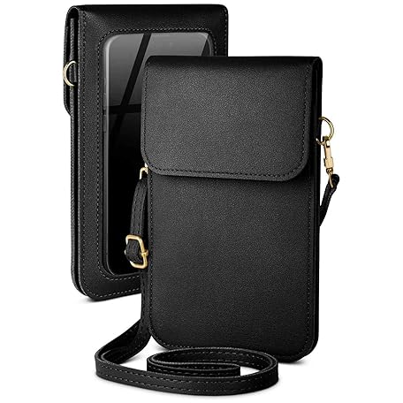 moex Mobile Phone Case for Hanging Google Pixel 3a XL - Small Handbag with Mobile Phone Compartment and Viewing Window, 2 Additional Compartments - Women's Mobile Phone Shoulder Bag, Onyx Black