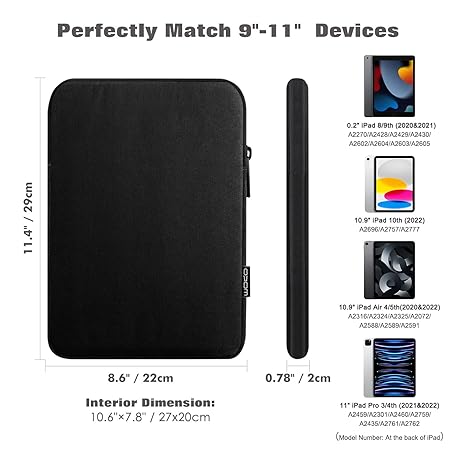 Thông tin sản phẩm MoKo 9-11 inch tablet case compatible with iPad Air 5 10.9 inch 2022, iPad Pro 11 2021, iPad 9/8/7 10.2, iPad Air 4 10.9, iPad 10.2, iPad Air 3 10.5 inches, iPad 9 inches 9.7, Surface Go, Galaxy S8 11/A 10.1 - Black