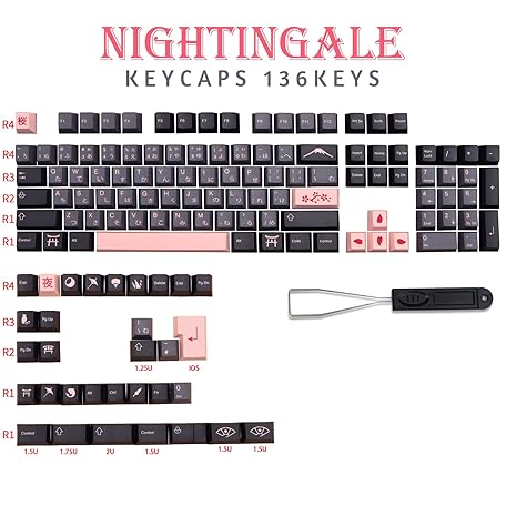 Sản phẩm MOLGRIA Keycaps 136 Set Night Sakura for Full Size Keyboard, Custom PBT Cherry Profile Keycaps Japanese Font for Cherry MX 104/87/68/61 ANSI/ISO Layout Keyboard đang được bán với giá ưu đãi là $65.6507 tại nước Đức.