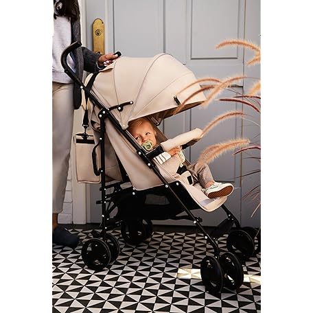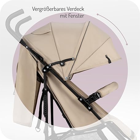 • MoMi AKIRA Kinderbuggy Kinderwagen ab 6 Monaten (bis 15 kg), verstellbarer 5-Punkt-Sicherheitsgurt, Babytasche, Einkaufskorb, Regen- und Insektenschutz.